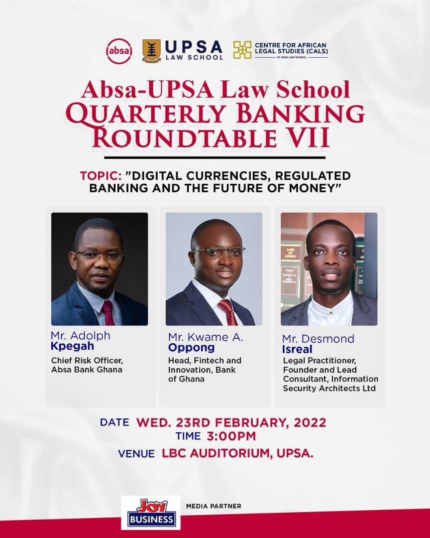 The Centre for African Legal Studies (CALS) at the UPSA Law School is pleased to announce the 7th edition of the Absa-UPSA Law School Quarterly Banking Roundtable.