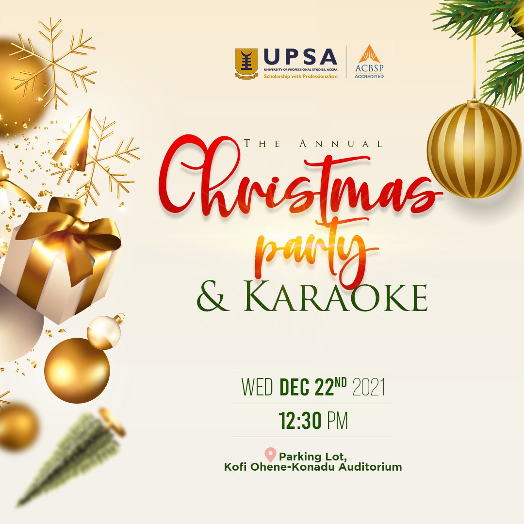 The University of Professional Studies, Accra is pleased to announce and invite members of the University community to the 2021 Annual Christmas Party & Karaoke.