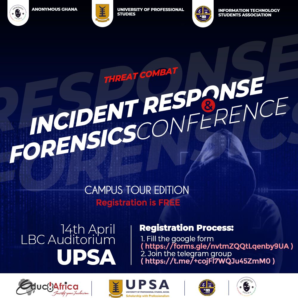 The Information Technology Students’ Association (ITSA) of the University of Professional Studies, Accra (UPSA), in partnership with Anonymous Ghana is super excited to announce the maiden Incident Response and Digital Forensics workshop dubbed the ‘Threat Combat Conference 2022‘.