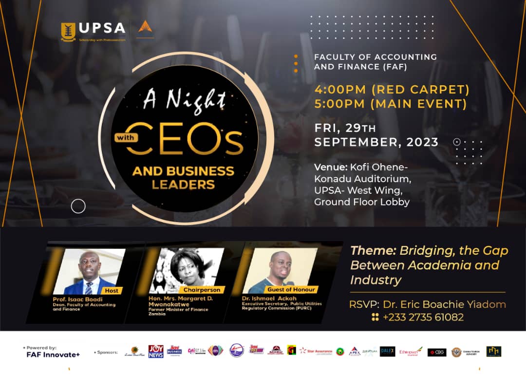 The Faculty of Accounting and Finance (FAF) of the University of Professional Studies, Accra, is delighted to present the maiden edition of “A Night with CEOs & Business Leaders” under its FAF Innovate+ Project.