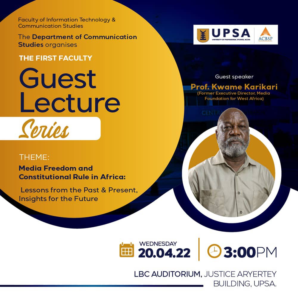 The Department of Communication Studies at the Faculty of Information & Communication Studies, UPSA is excited to invite the University Community to its maiden Faculty Guest Lecture Series.