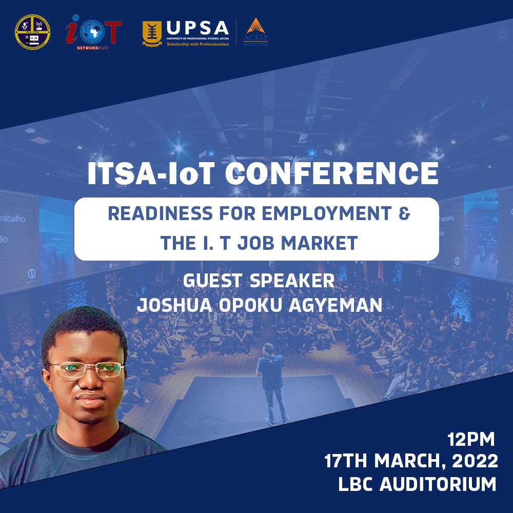 The Information Technology Students’ Association (ITSA) of the University of Professional Studies, Accra (UPSA), in partnership with Internet of Things (IoT) Ghana, cordially invites the University community to an interactive Technology Conference on the theme, “Readiness for Employment & The I. T. Job Market”.