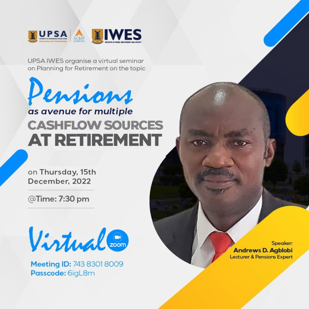 The Institute of Work, Employment and Society (IWES), is pleased to invite you to a Virtual Seminar on Planning for Retirement on Pension as Avenue for Multiple Cashflow Sources at Retirement.