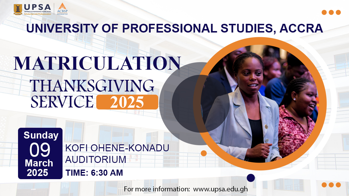 The University wishes to inform all Undergraduate, Diploma, and Postgraduate (January Intake) fresh students that the 2025 Matriculation Thanksgiving Service will be held as follows: