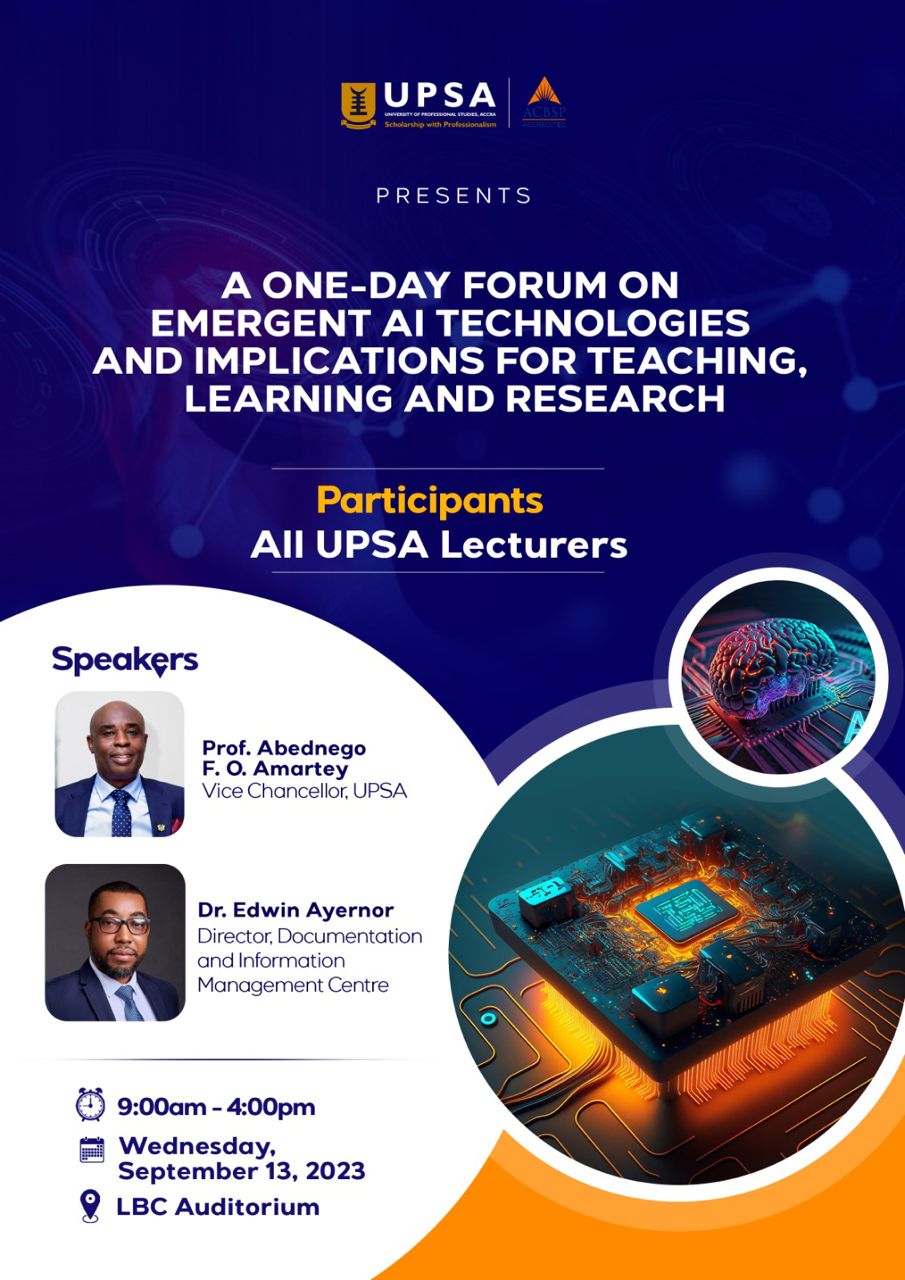 The management of the University of The Professional Studies, Accra warmly invites all lecturers to a one-day forum on emergent AI technologies and its implications for teaching, learning and research.
