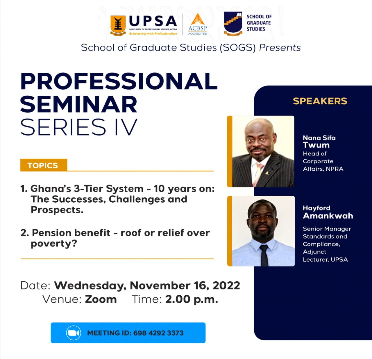 The School of Graduate Studies (SOGS), University of Professional Studies, Accra, is pleased to invite you to the fourth edition of its Professional Seminar Series.