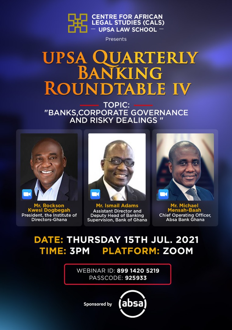 The Centre for African Legal Studies (CALS), UPSA Law School presents the fourth edition of the UPSA Quarterly Banking Roundtable.